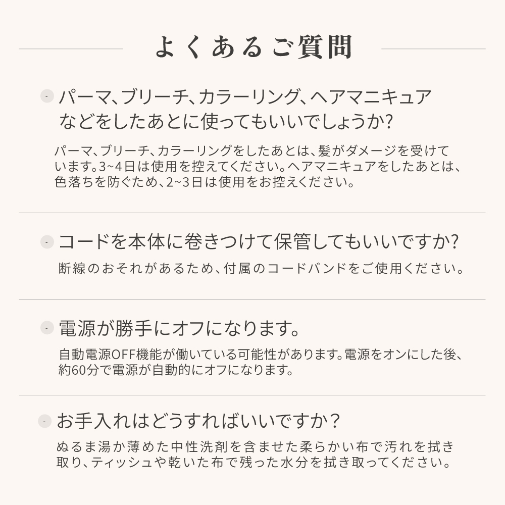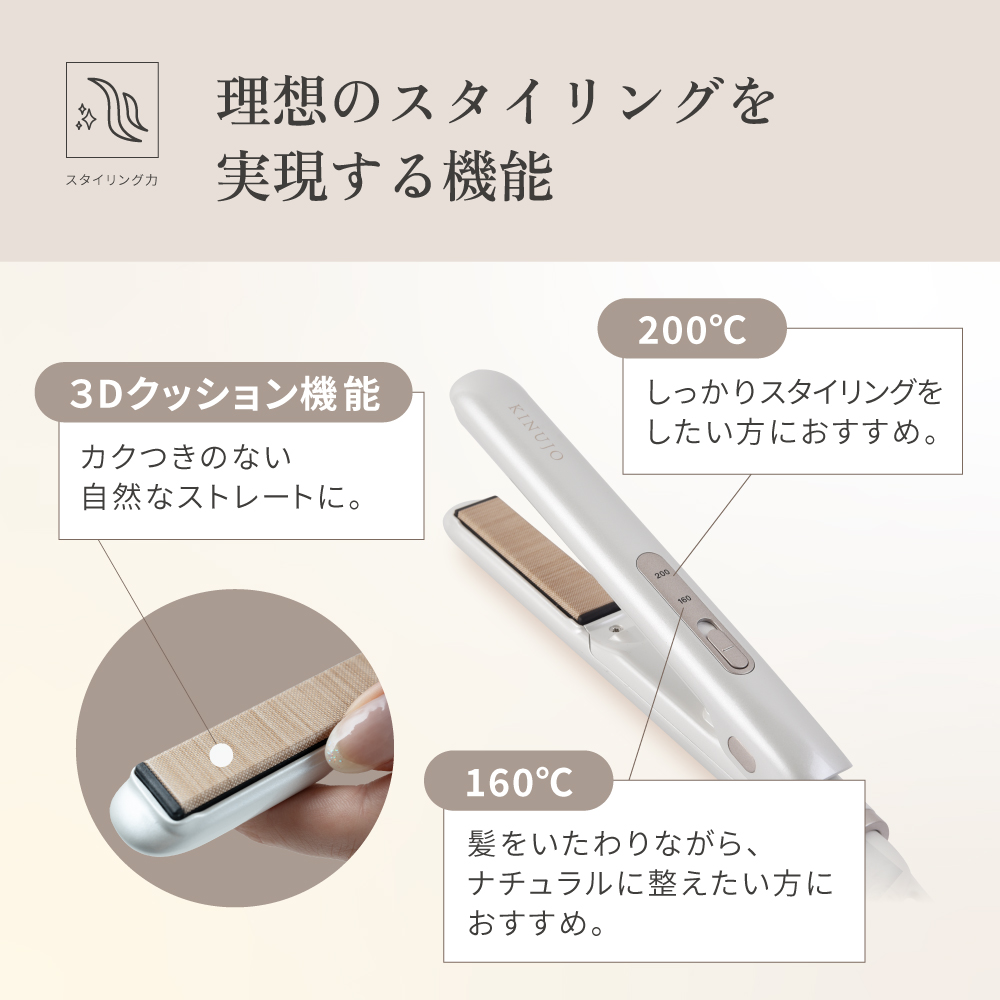 2段階温度設定とマイナスイオン搭載で、毛先まで思い通りの仕上がりに。